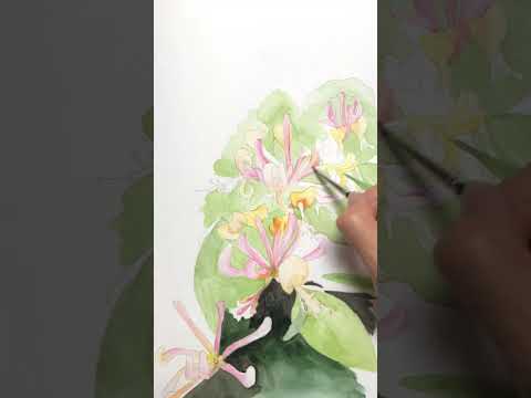 Capturing some wild honeysuckle from my walk in my sketchbook, with a quick watercolour and coloured pencil study.